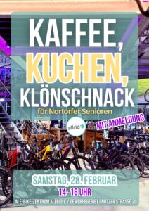 Wir freuen uns über viele Teilnehmer in den Räumen vom E-Bike-Zentrum allrid-E im Gewerbegebiet Gnutzer Straße 20.