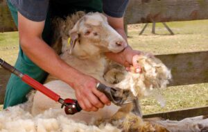 Während der Schafschur können Eltern und Kinder ab 11.00 Uhr im Schauhaus im Eingangsbereich der Schererin bei der Arbeit über die Schulter schauen, Naturwolle mit allen Sinnen erleben und zusehen, wie der erste Schritt zum Wollfaden erfolgt.