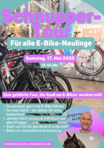 Zwecks Planung der Leihbikes bitten wir um verbindliche Anmeldung unter info@allrid-e.de.